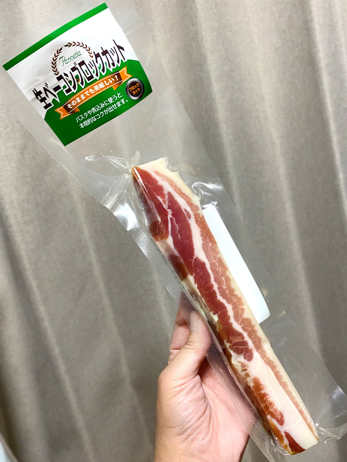 しっとり濃厚でワインにもよく合うカルディの生ベーコン。見つけたらぜひ手に取ってみてくださいね。